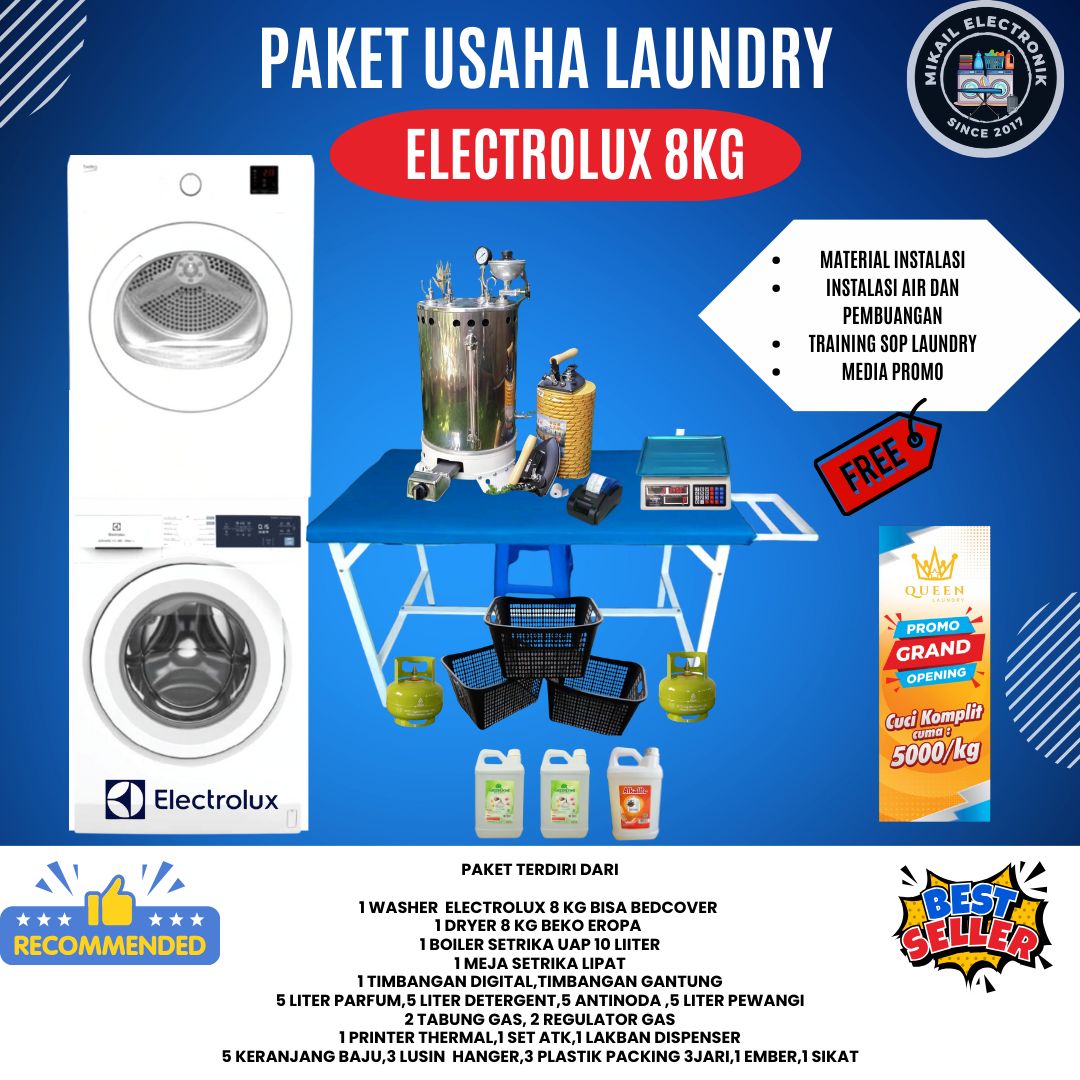 Mikail Elektronik, yang berdiri sejak tahun 2017, adalah perusahaan yang bergerak di bidang penyediaan paket laundry lengkap untuk konsumen yang ingin memulai usaha laundry. Kami menyediakan berbagai macam peralatan dan perlengkapan laundry berkualitas tinggi, mulai dari mesin cuci, pengering, setrika uap, hingga bahan kimia laundry. Dengan paket laundry dari Mikail Elektronik, pelanggan mendapatkan solusi menyeluruh yang mencakup semua kebutuhan operasional usaha laundry, termasuk pelatihan penggunaan peralatan dan dukungan teknis.
